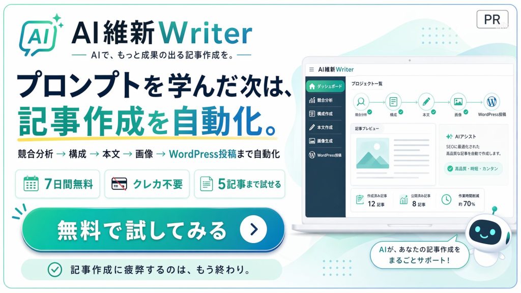 「ブログのアクセスを増やしたい」のか「新商品の良さを伝えたい」のかによって、AIが選ぶ言葉や構成は180度変わってきます。